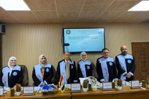 The lecturer, Prof. Dr. Dunya Khair Khasab, from the University of Basra, participated in the College of Marine Sciences as a member of the discussion of the doctoral thesis (Spatial Analysis of Environmental Response Indicators for Middle School Students in Basra Governorate) for the student (Sadiq Yasser Jaber) in the College of Arts, Department of Geography and Geographic Information Systems, University of Basra.