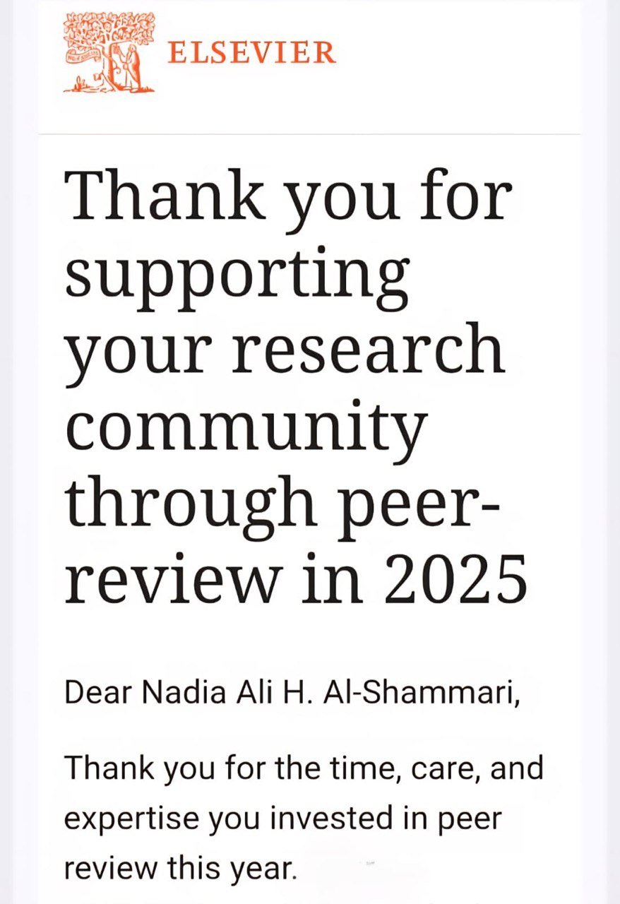 This certificate recognizes Dr. Nadia's valuable efforts in evaluating several scientific research papers, enhancing the College of Marine Sciences' standing within the international academic community. This achievement reflects the college's commitment to excellence and innovation in scientific research and is a significant step towards strengthening its global academic reputation.