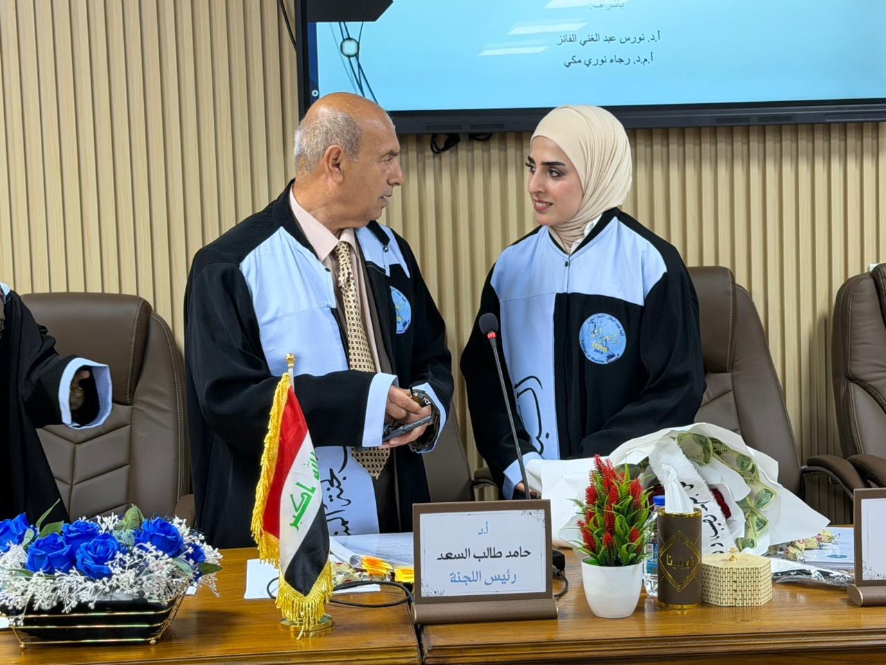 With God's help, the Master's thesis of student Iman Majeed Hameed, in the Department of Marine Sciences, entitled "Physiological and Histological Changes as Biomarkers of the Sublethal Toxicity of Triclosan on Blue Tilapia (Oreocromis aureus)," was discussed under the supervision of Professor Dr. Nawras Abdulghani Abdulzahra and Assistant Professor Dr. Raja Nouri Makki. The discussion took place at 9:00 AM on Monday, February 9, 2026, in the Conference and Graduate Studies Hall at the College of Marine Sciences.