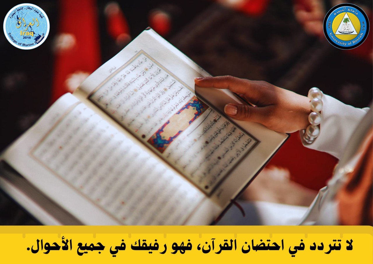 As part of the National Quran Day activities organized by the Educational Guidance Unit in cooperation with the Human Rights Unit and the Women's Affairs Unit at the College of Marine Sciences, University of Basra, student Nabaa Adnan Ali from the Natural Sciences Department recited a verse from the Holy Quran. Her recitation was well-received by the audience and highlighted the importance of the Quran in our lives.